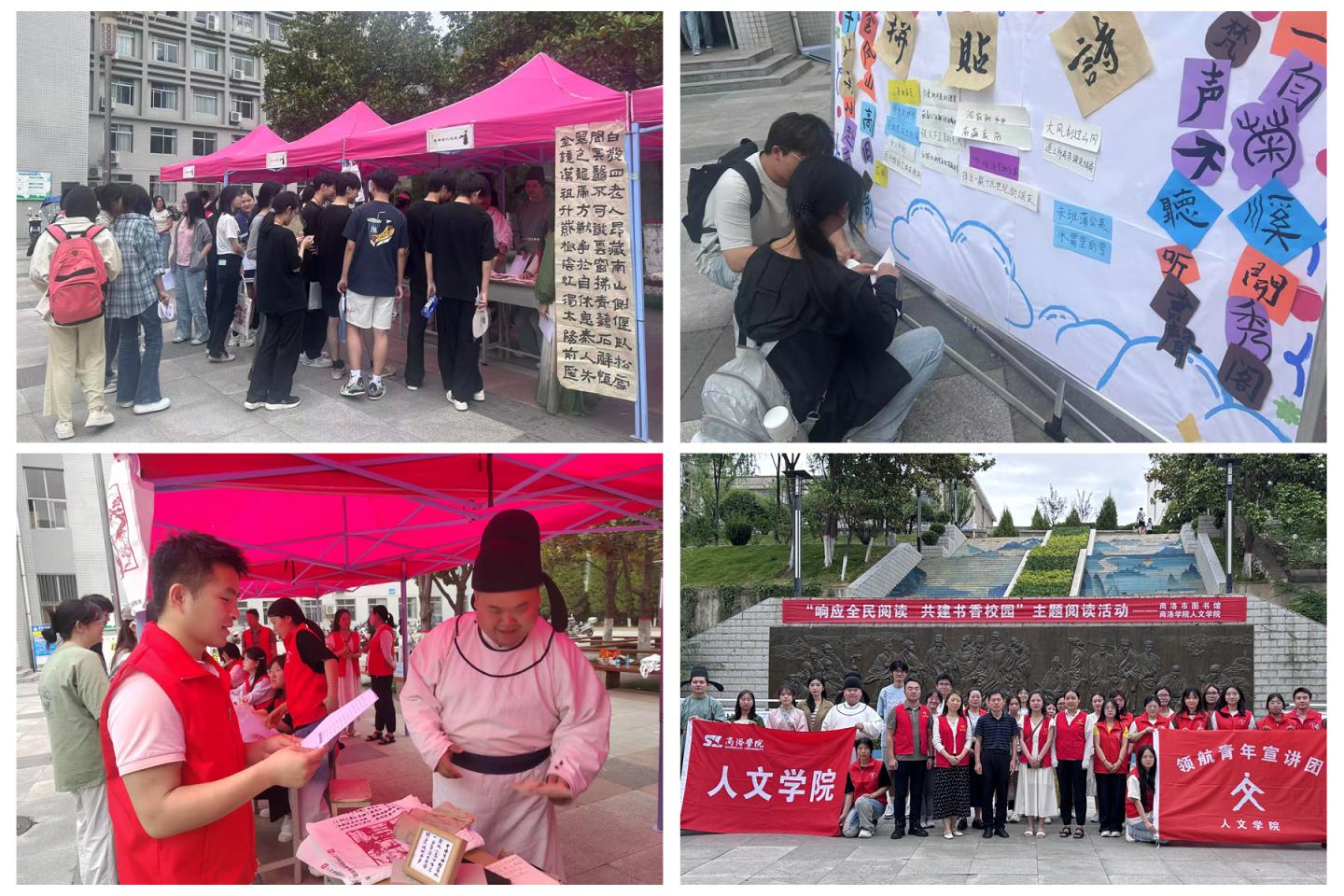 活动中,通过将知识性、趣味性与公益性相融合的方式,设置了书籍捐赠传递书香温度、创意拼贴激发诗意灵感、知识竞答碰撞思维火花、名人线索探寻地方文脉等环节,以书籍捐赠、知识问答、诗句拼贴、以卡探文等互动形式,有效激发了学生的阅读热情,提高了学生的文化参与感,搭建了知识共享与文化传播的桥梁与纽带。