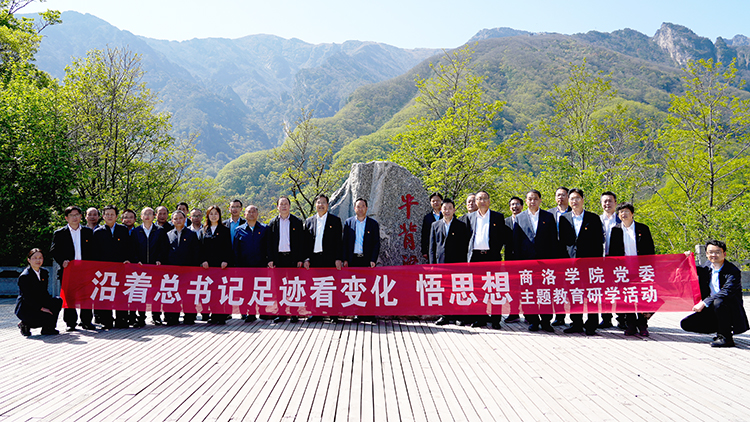 5月12日,校党委理论学习中心组前往柞水县牛背梁、金米村,开展“沿着总书记足迹看变化、悟思想”主题教育实践研学活动。校领导张志昌、彭虎军、刘宝盈、王新军,党委委员,党委理论学习中心组成员、各二级党组织书记沿着习近平总书记在商洛考察时的路线,参观考察柞水县小岭镇金米村和牛背梁国家级自然保护区,重温习近平总书记情牵陕西的殷殷嘱托,深切体悟习近平总书记来陕考察重要讲话重要指示批示精神的实践伟力,推动学习贯彻习近平新时代中国特色社会主义思想主题教育走深走实、见行见效。