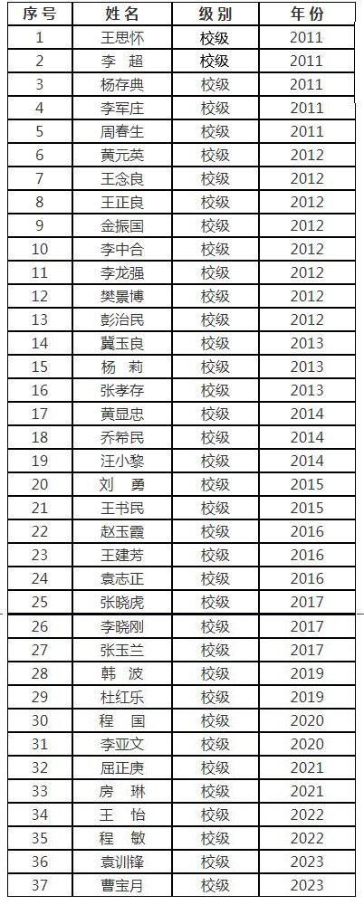 校级教学名师一览表