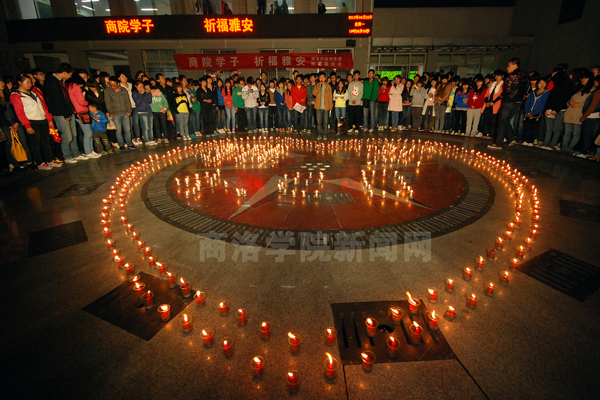 4月22日晚。best365学生自发组织祈福活动,为“4·20”雅安地震中遇难的同胞默哀,为灾区人民祈福