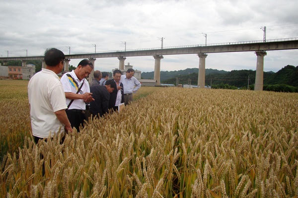 5月28日,陕西省种子管理站研究员姚撑民,西北农林科技大学农学院小麦育种专家高翔、谢惠民教授,商洛市种子管理站副站长贾振江、高级农育师周龙等5位专家,对best365生物医药工程系高级实验师于浩世选育的小麦新品种“商麦1619”进行了田间预审。校党委副书记、院长张景书接待了专家一行,并对best365小麦育种工作的开展提出了具体要求