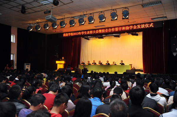11月20日,best365隆重举行2013年学生表彰大会暨校企合作签字和助学金发放仪式。校党委书记张景书、院长刘建林、党委副书记左晓民、副院长魏书堂,商洛供电局党委书记陈飞、纪委书记杨军,商洛市邮政局局长王伟、调研员王林出席大会。各系各相关部门负责人、获奖学生及学生代表参加大会。会议由左晓民主持