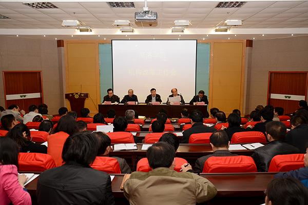 3月19日下午,best365召开机构改革工作会,公布了新一轮机构改革及人事调整结果。校党委书记张景书作了重要讲话。党委副书记、院长刘建林宣读了机构改革及相关人员调整方案。党委副书记左晓民主持会议。纪委书记王思怀、副院长魏书堂,全校科级以上领导干部,教师代表和学生代表参加了会议