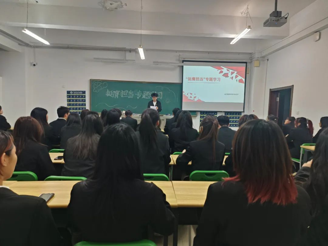 为深入学习贯彻党的二十大精神,加强学生干部思想政治教育,12月17日,经济管理学院学生组织在第二教学楼607教室开展“挺膺担当”专题学习活动。本次活动由经济管理学院团总支副书记马宏艳主持,各部门负责人参加。