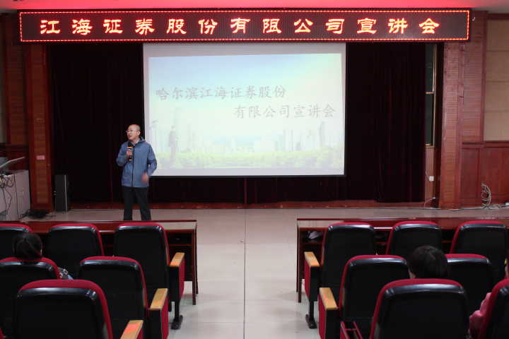 江海证券股份有限公司的讲师宁雪峰做开篇致辞,随后分享了自己的就业经验,强调要对自己的人生高度负责的重要性,并提出要合理规划人生。接着他向现场学生讲述了江海证券公司建立了权责分明、科学规范、激励与约束相结合的管理体系,形成了稳健务实的经营风格,树立了良好的公司信誉和服务品牌,并欢迎现场学生积极与企业建立联系,了解企业,走进公司。