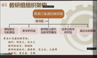 会议主要内容包含以下五个方面:1、各省教研组队伍组建与成员纳新;2、资源建设基本情况调查;3、各省教研组2022年工作计划汇报;4、钉钉平台使用及开发技术报告;5、教研室首次学术交流报告。