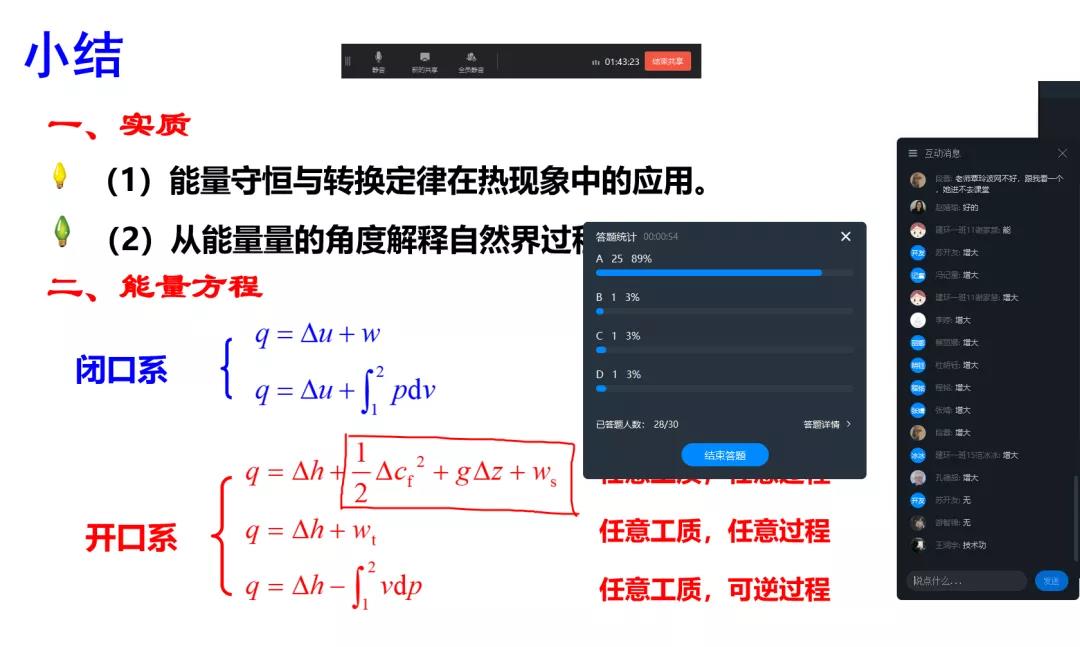 课程中利用设问、提问、钉钉平台的答题卡功能、公屏答题、在线讨论等多种形式与学生进行有效互动,节奏频率掌握合适,达到了良好的互动效果和教学。