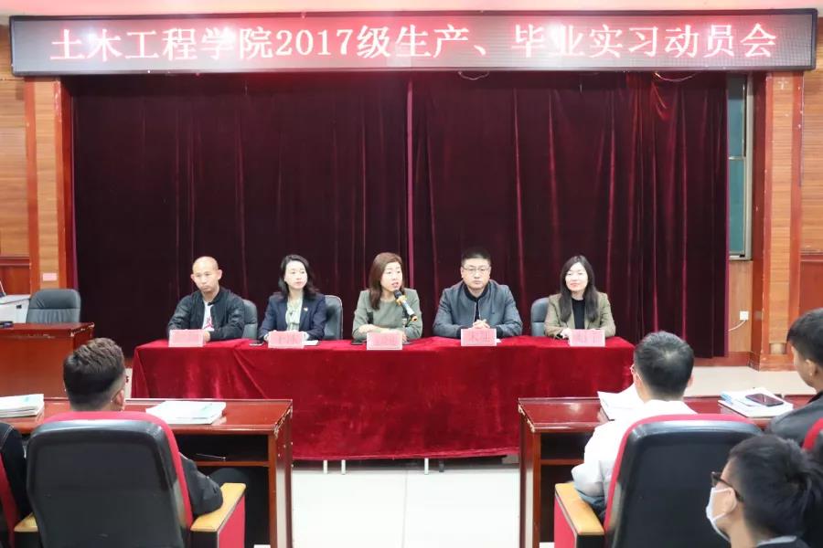 而后,盖院长指出学院为2017级学生生产、毕业实习环节做了大量的准备工作,已经与省内多家建筑行业知名企业达成了合作意向,可以为2017级毕业生提供实习机会和就业岗位。生产、毕业实习工作得到了金沙官网领导的大力支持和帮助,希望同学们在实习期间能把握机会,更要严肃认真的对待实习工作,在实践中找准自己今后就业的方向,要对自己未来发展有规划。