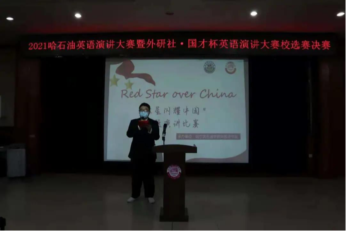 今年演讲大赛的定题演讲题目为:Red Star Over China(红星照耀中国)。这颗具有深远影响和伟大意义的“红星”,照耀中国,照耀人民,激励每一位大学生为实现中华民族伟大复兴的梦想、为构建人类命运共同体而努力学习,奋力前行。本次大赛的评委是贺鑫、孙立轩和郑泽宇老师。