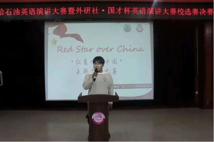 本次大赛分为定题演讲和即兴演讲两个部分,在主持人致开幕词并简单介绍比赛规则后,比赛正式开始。选手们围绕“Red Star over China”这一主题进行演讲。在此过程中,选手们富有感染力的演讲展现了他们良好的语言应用能力和逻辑思辨能力。