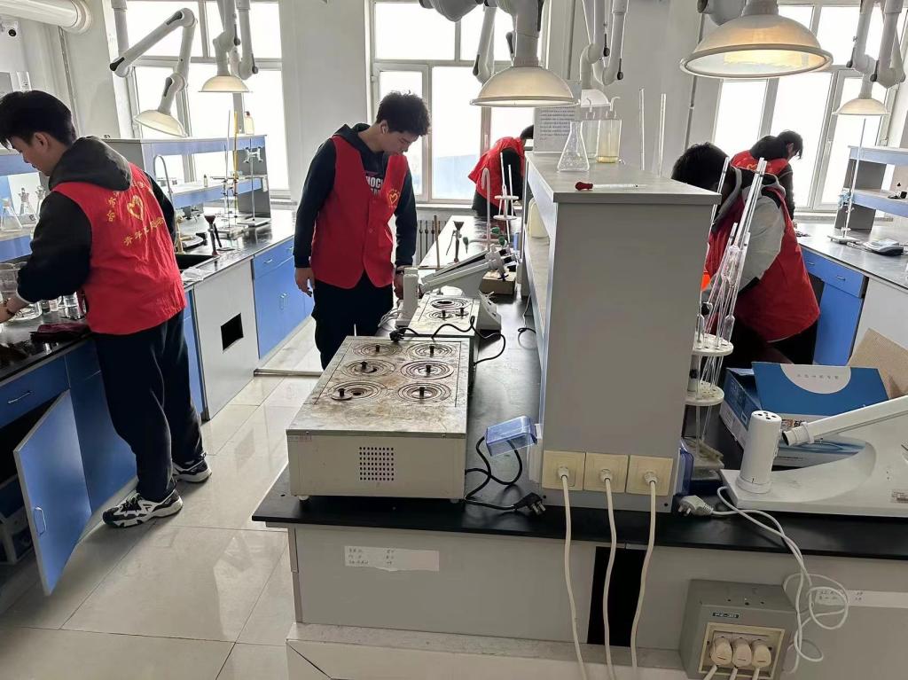 志愿者们分工明确,组织有序,开展室内外志愿服务活动,室外志愿者们来到篮球场,确保地面无纸屑、烟头、以及明显污渍,把篮球场每一个角落都打扫得干干净净。实验室内,志愿者们积极地清扫地面,擦拭实验台与仪器,将仪器进行相应的整理摆放,并针对室内卫生死角进行细致的清理,为同学们营造一个干净整洁的实验环境。志愿者们积极性高、配合默契、以劳动为荣,时刻发扬着志愿精神和大学生的优良风貌。