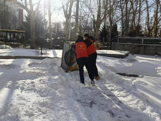 在本次活动中,他们充分发扬不怕苦、不怕累的精神,拿着铁锹奋力铲冰清雪,他们冲在前、干在先、战严寒、斗冰雪,分工有序,干得热火朝天,道路上演奏着“咣咣咔咔嚓嚓”的扫雪除冰“进行曲”。忙碌的身影映衬着红色的马甲,在冬天凛冽的寒风中形成一道靓丽的风景线。志愿者们劳动的热情和团结的力量让这个冬天变得格外温暖,经过一个多小时的奋战,为老人们开辟出一条洋溢着暖暖温情的方便之路。