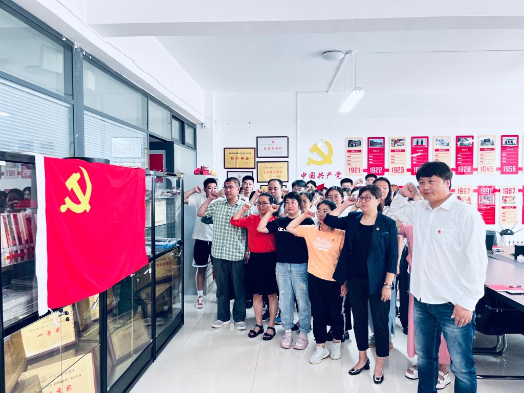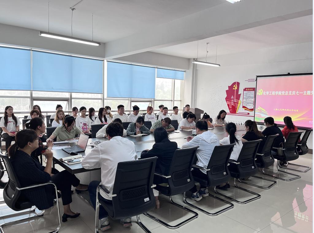 为了深入贯彻落实党的二十大精神,庆祝中国共产党成立102周年,弘扬伟大建党精神,增强党支部的凝聚力和战斗力,赓续红色血脉,传承党的优良传统,激发党员的创新精神和责任意识。2023年6月27日12时30分,化学工程学院党总支组织开展庆“七一”主题党日活动,党总支书记张艳丛、副书记杨昕、赵婧,教工党支部书记彭殿宝、学生党支部书记于鑫及学院全体师生党员参加。