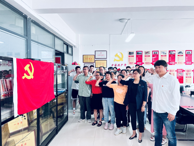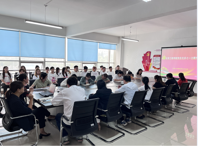 为了深入贯彻落实党的二十大精神,庆祝中国共产党成立102周年,弘扬伟大建党精神,增强党支部的凝聚力和战斗力,赓续红色血脉,传承党的优良传统,激发党员的创新精神和责任意识。2023年6月27日12时30分,化学工程学院党总支组织开展庆“七一”主题党日活动,院长杨昕、党总支书记张艳丛、副院长彭殿宝、党总支副书记赵婧及学院全体师生党员参加。