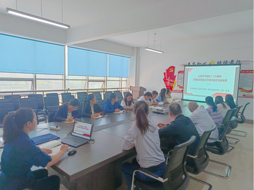 为推动学习贯彻习近平新时代中国特色社会主义思想主题教育走深走实,引领广大党员在主题教育中感悟思想伟力、凝聚奋进力量。2023年6月6日14时化学工程学院教工党支部于第二教学楼党员之家开展“认真学习党的二十大精神,开辟马克思主义中国化时代化新境界”专题党课学习活动,活动由党总支书记张艳丛主持,学院全体教工党员参加。