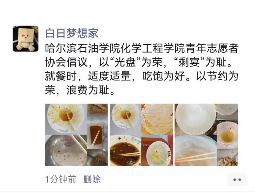 活动中,同学们通过在互联网上发布光盘照片、标语等方式,使简单的光盘行为有了绿色价值。行为虽小,但引导同学们形成勤俭节约、绿色环保意识的意义重大。