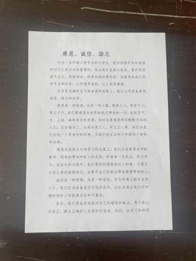 为进一步宣传贯彻党和国家的资助政策,教育引导学生受助思源、诚实守信的精神风貌,培育受助学生的文化底蕴和家国情怀,2023年5月30日—6月2日,化学工程学院组织开展学生资助诚信教育主题征文活动。活动通过文字讲述了身边的诚信、感恩故事,感情真挚、内容充实,体现出我院学子积极进取、诚信感恩、自强不息的精神面貌,表达了对国家资助政策的感激和对父母的感恩之情。