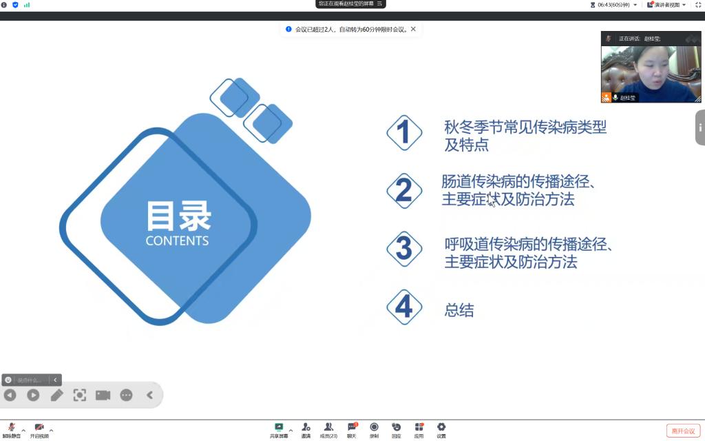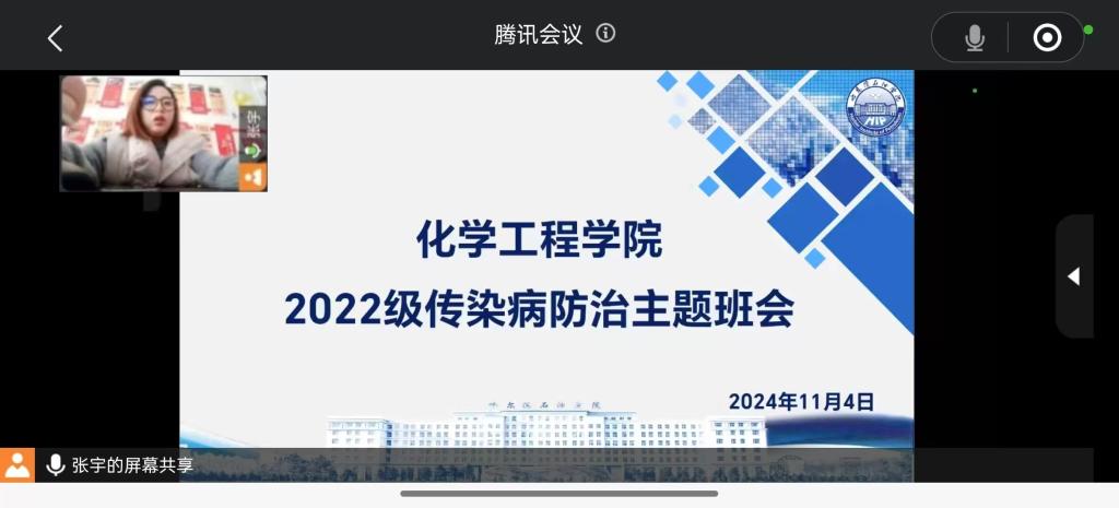 为积极响应国家关于加强公共卫生体系建设、提高全民健康素养的号召,增强学生对秋冬季传染病的预防意识,提高学生抵抗力,2024年11月4日-11月5日,化学工程学院开展传染病防治主题班会,会议由各年级辅导员主持,全体同学参加。