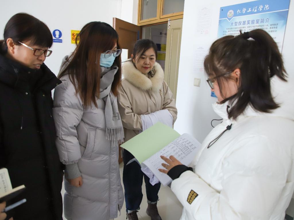 为了进一步加强学院实验室安全管理工作,确保寒假期间实验室安全,根据《金沙检测线路js69岁末年初安全生产大排查大整治工作方案》和《关于寒假前实验室安全检查的通知》要求,2023年12月25日,化学工程学院院长杨昕、党总支书记徐宏莉带队开展实验室安全现场检查,党总支副书记赵婧、各系主任陪同检查。