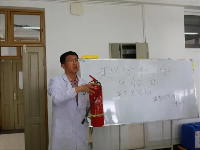 实验中心主任许伟锋为同学们讲解在实验室遇到紧急情况时,如何逃生及其注意事项,介绍了灭火器的基本操作,随后开始消防安全演练,通过模拟实验室事故场景,同学们亲身体验到逃生的紧迫感和重要性,从而更加深入地认识到实验室安全的重要性。
