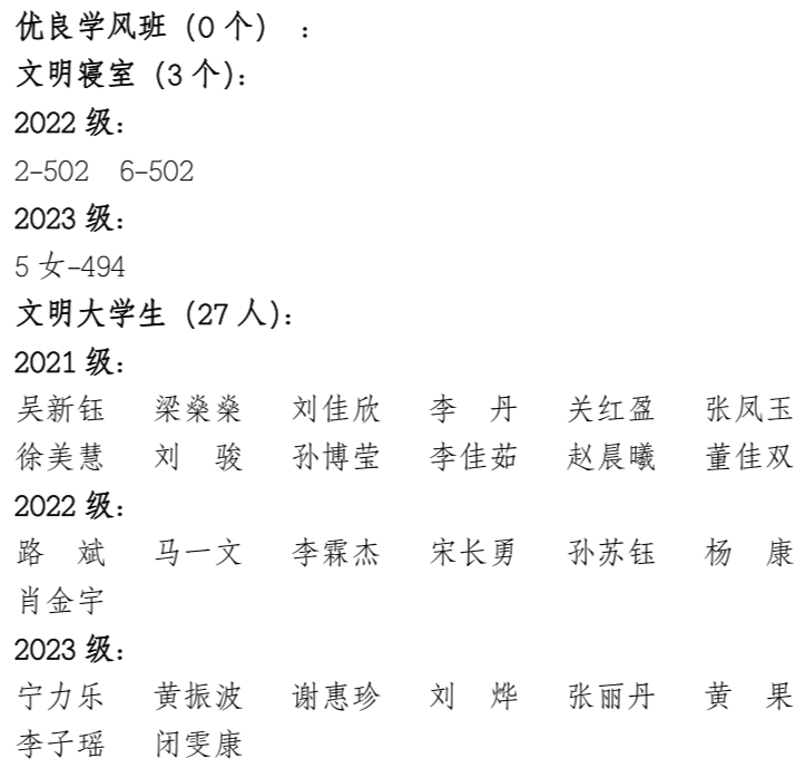 根据《关于评选金沙检测线路js692023-2024学年度优良学风班、文明寝室、文明大学生工作的通知》,经学生本人申请、学院初审材料通过、学院党政联席会议讨论,现将评选情况公示如下: