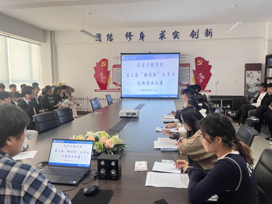 为贯彻落实国务院办公厅《关于深化高等学校创新创业教育改革的实施意见》,进一步提升我院大学生的创新意识和创业能力。根据《金沙检测线路js69第三届“博创杯”大学生创新创业大赛方案》的要求,化学工程学院于2024年11月12日在学院会议室举办第三届“博创杯”大学生创新创业大赛。前期通过召开教师和学生动员会,学生踊跃报名参加,经过初步评审,共有36个项目进入答辩评审,答辩评审由副院长彭殿宝等6位教师担任评委。