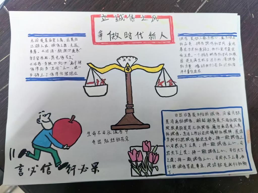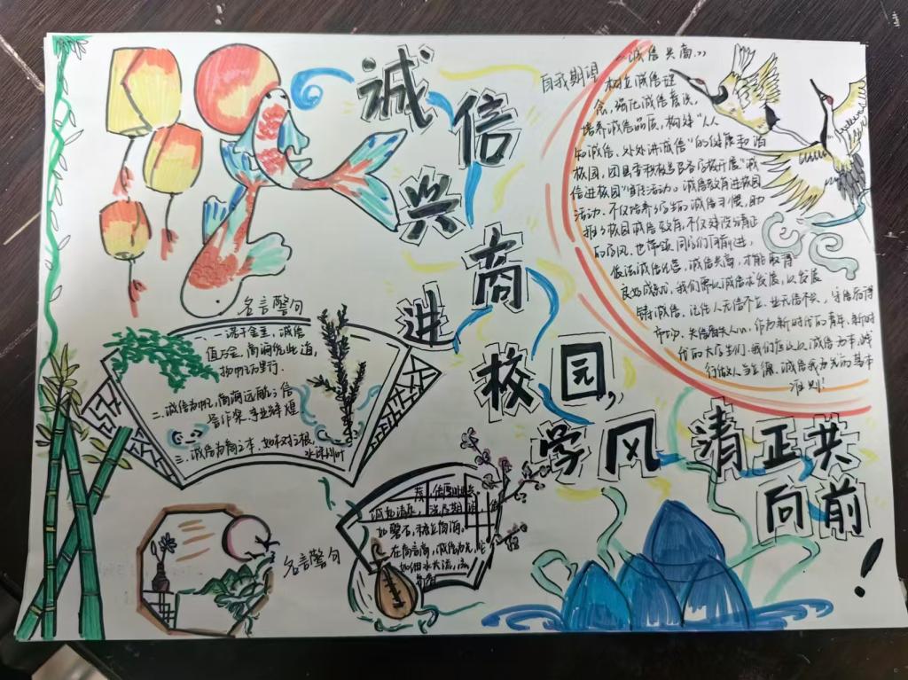 本次手抄报活动我院学子积极响应,踊跃参与并通过绘画、文字等形式展示了诚实守信的重要意义,营造积极向上的校园文化氛围,推动诚信兴商理念和清正学风的传播,未来,我院将持续开展“诚信教育”相关活动,并以此为契机,进一步加强学院素质教育,培养品学兼优、德才兼备的新时代接班人。
