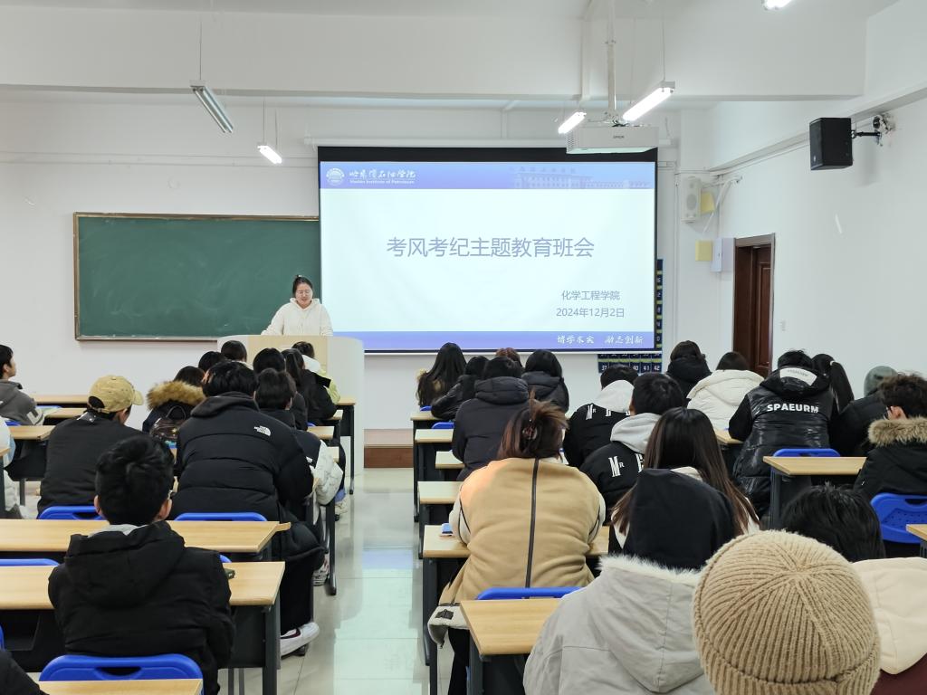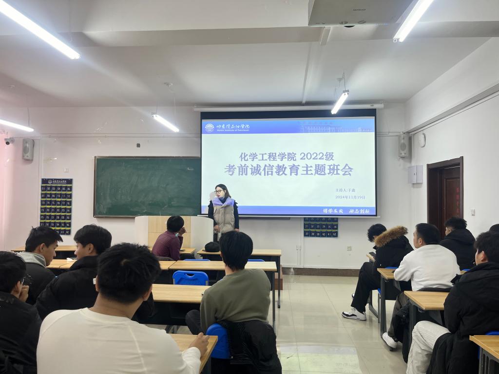 为营造风清气正的考试环境,进一步端正考风、严肃考纪,增强同学们的诚信考试意识,2024年12月2日,化学工程学院开展考风考纪主题教育班会。活动由各年级辅导员主持,22级、23级、24级全体学生参加。