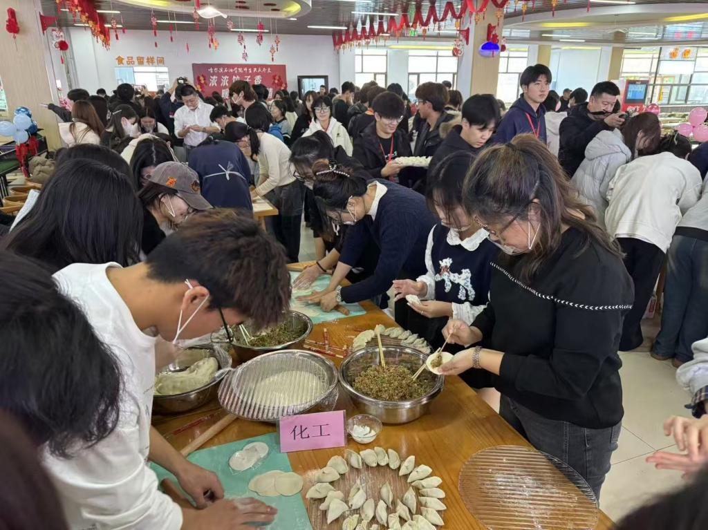 在传统节气冬至即将到来之际,为进一步弘扬中华优秀传统文化,丰富校园文化生活,2024年12月20日,化学工程学院教职工及学生代表齐聚一堂,参加“情满校园,饺香四溢”——冬至师生包饺子大赛。学院院长杨昕、党总支书记赵婧、团总支书记兼2024级辅导员冯海龙来到现场,共同体验传统节日的魅力,感受冬日温情。