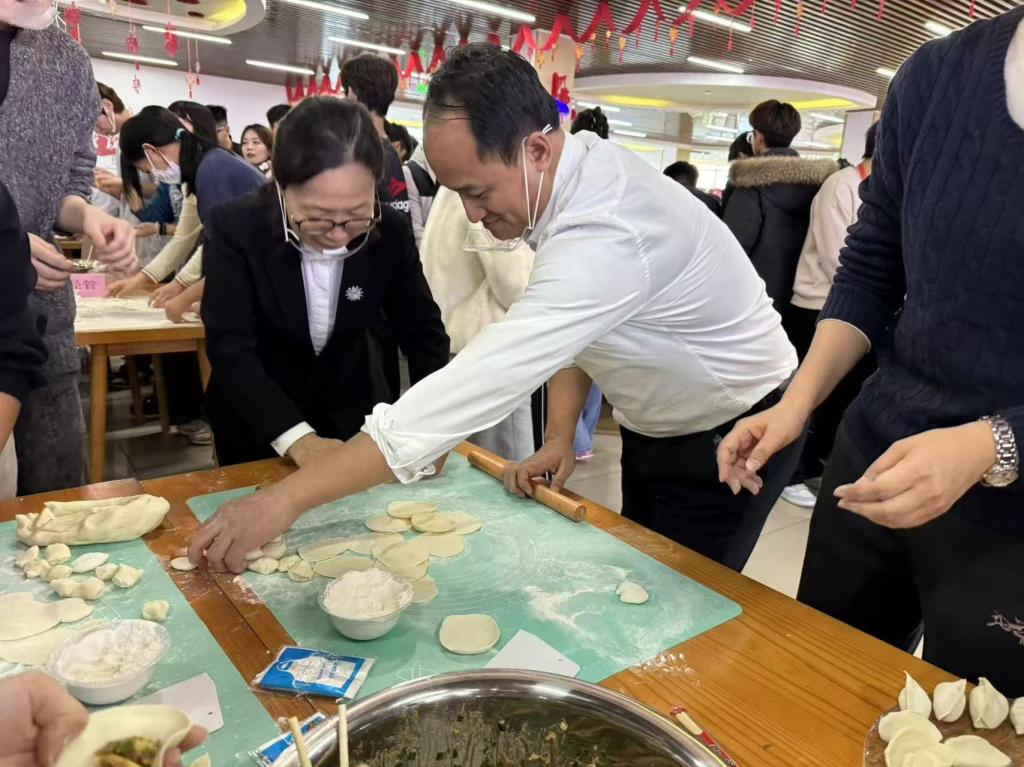 活动现场热闹非凡,大家围站在桌旁,纷纷拿出自己的看家本领。老师们手法娴熟,一捏一按,一个个饱满的饺子便成型了;学生们也不甘示弱,认真学习,逐渐从生疏变得熟练。在大家齐心协力之下,形态各异的饺子摆满了餐盘,有传统的月牙饺,也有创意的元宝饺,每一个饺子都蕴含着师生们的创意与热情。王义宁校长与林立民书记也亲临现场,与广大师生一同感受传统美食文化的魅力,共度欢乐温馨的时光。