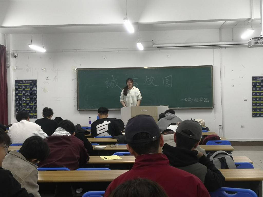 为积极响应校园精神文明建设,全面推进诚信价值观教育,增强学生的诚信意识,2025年4月1日,化学工程学院在第二教学楼三楼举办“诚信校园”主题活动,吸引了众多学生的关注与参与。