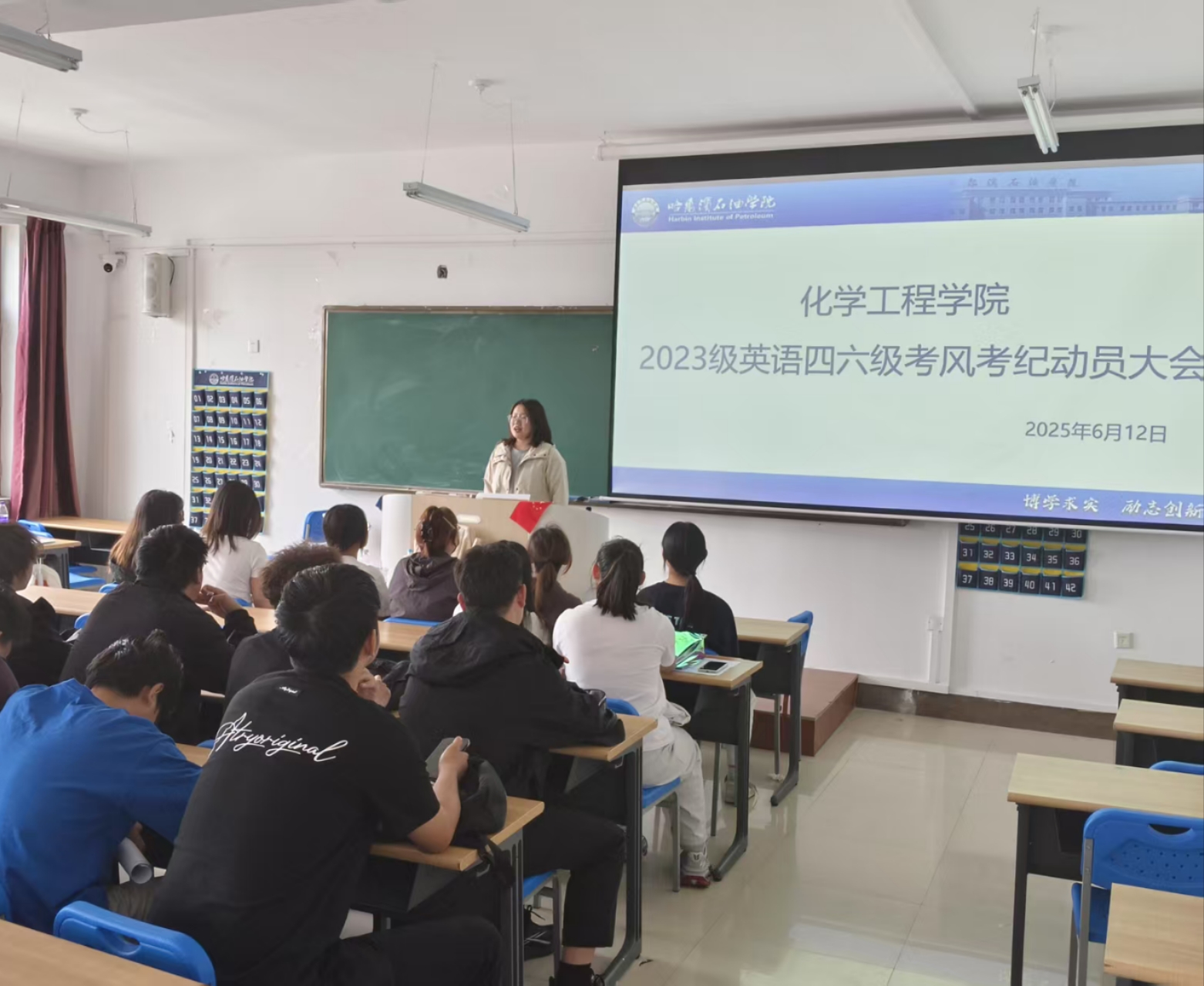 为强化学生诚信意识,进一步规范考试管理、严肃考风考纪、维护考试的公平公正、促进优良学风的养成。6月12日-6月13日,化学工程学院召开英语四六级考风考纪动员大会。会议由各年级辅导员老师主讲,2022级、2023级、2024级全体四六级考生参与。