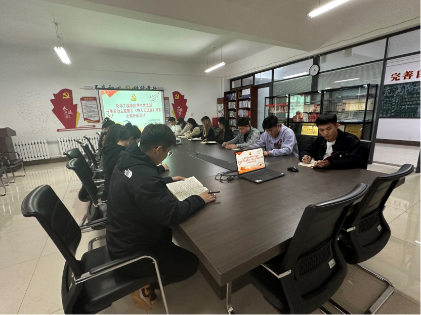 为深入开展学习贯彻习近平新时代中国特色社会主义思想主题教育,让同学们树立正确的劳动观,营造崇尚劳动、尊重劳动的良好氛围,2023年5月11日,化学工程学院学生党支部于第二教学楼党员之家开展劳动主题影片《铁人王进喜》观影心得分享活动,在校学生党员参加此次活动。