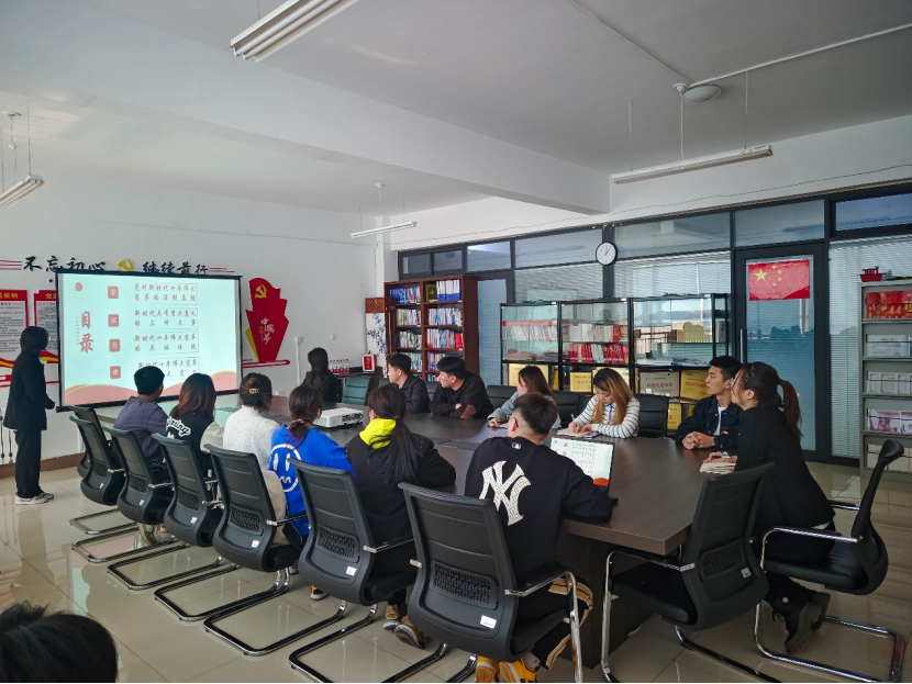 会议伊始,宋郑涵同学带领大家从党对新时代十年伟大变革的深刻总结、新时代具有重大意义的三件大事、新时代十年伟大变革的具体体现、新时代十年伟大变革的重大意义四个方面学习党的二十大精神,让广大青年对党的创新理论有了更深入的理解,坚定了笃定奋进的决心。
