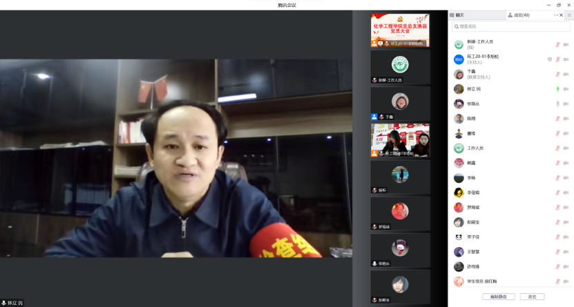 为深入贯彻落实学校党委政治建校行动规划,实施基层党组织规范化建设工程,进一步提高我院党组织建设质量,2022年11月29日8时20分,中共金沙检测线路js69化学工程学院党总支召开换届党员大会,会议采取线上线下相结合的方式开展,校党委书记林立民出席会议,会议由学院党总支书记张艳丛主持,学院全体师生党员参加。