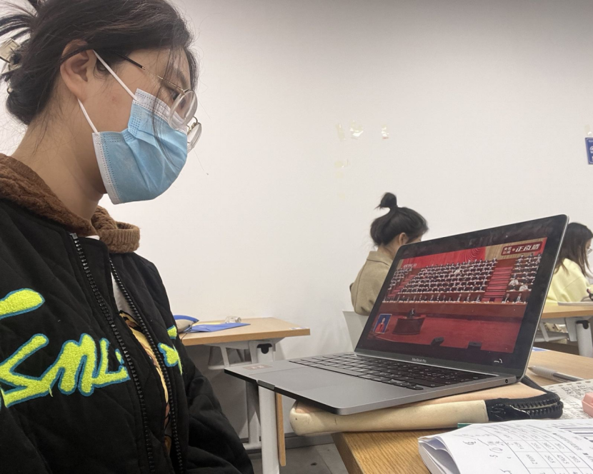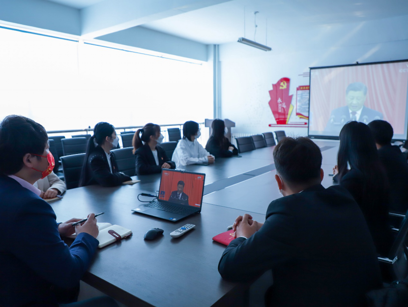 全体师生通过电视、电脑和手机等多种方式,收看党的二十大开幕盛会。