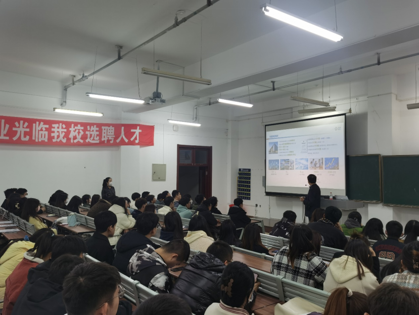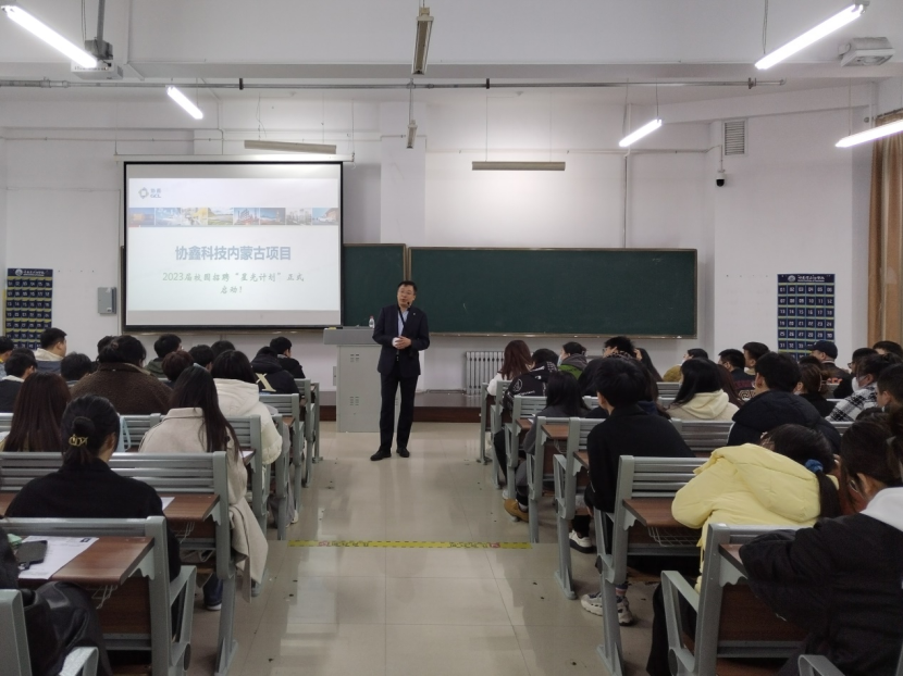 为切实做好我院学生“3+1”企业综合实习及就业工作,提高我院学生实习就业质量,同时为社会输送更多专业性人才,2023年3月10日18时,协鑫科技控股有限公司内蒙古项目春季校园招聘“星光计划”于第一教学楼204室正式启动。协鑫科技控股有限公司资深招聘总监薛智栋、内蒙古鑫元硅材料科技有限公司高级顾问邢雅静来到现场进行宣讲。