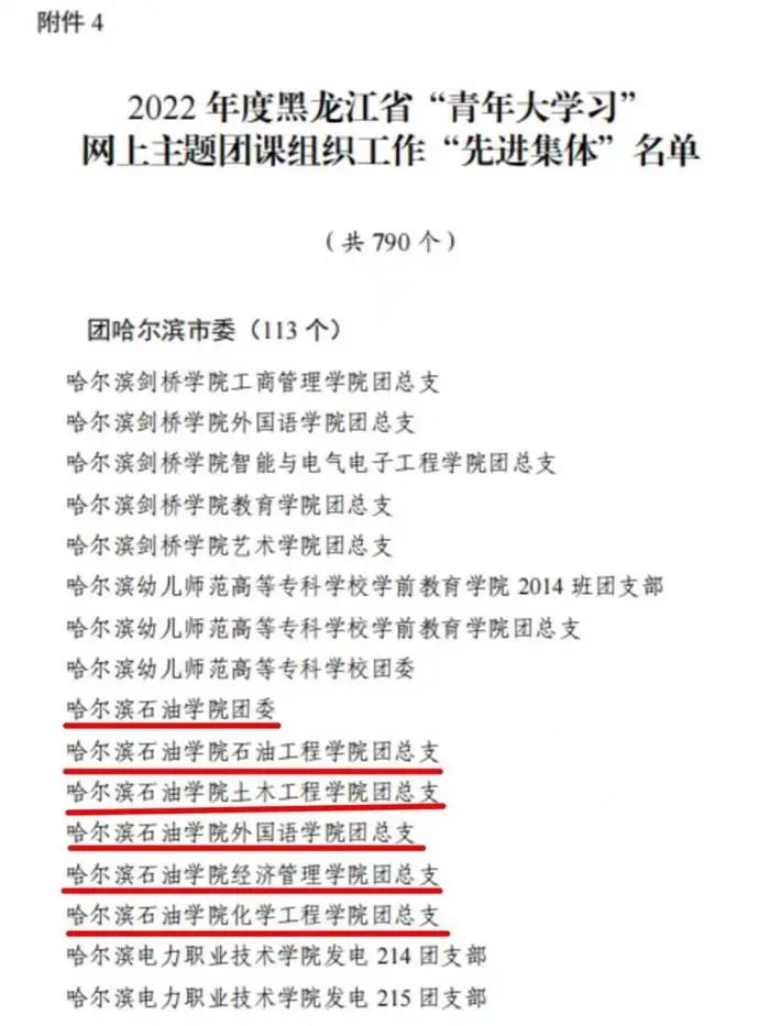 金沙检测线路js69团委、石油工程学院团总支、土木工程学院团总支、外国语学院团总支、经济管理学院团总支、化学工程学院团总支荣获2022年度黑龙江省“青年大学习”网上主题团课组织工作“先进集体”荣誉称号。