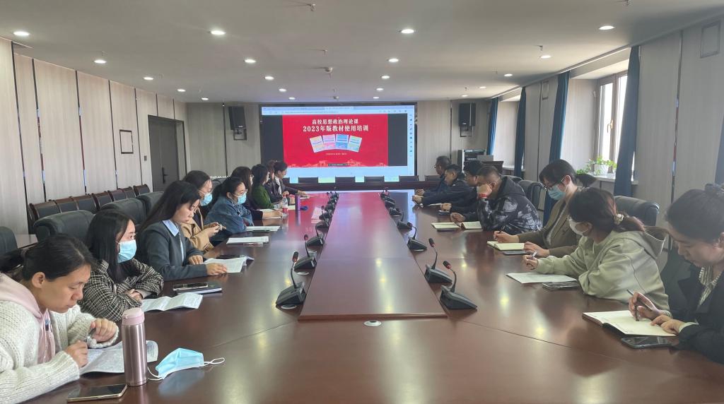 为帮助思政课教师更好地把握高校思政课2023年版教材的主要内容和基本精神,切实用好新教材,按照黑龙江省教育厅有关通知要求,2023年4月27日,金沙官网马克思主义学院以线下分会场的形式,集中组织全体思政课教师参加由教育部、中宣部主办的全国高校思政课2023版教材使用培训会。