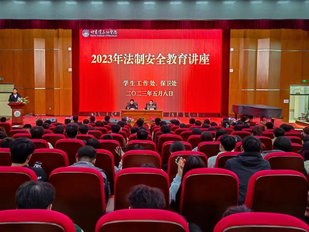 点亮法治灯塔,扣好法律纽带,守护平安校园。为加大校园法治教育宣传力度,提高学生的法律意识,营造文明、平安、和谐的校园育人环境,进一步培养学生知法、守法的法律品格,2023年5月8日哈尔滨市公安局松北分局宣讲团来金沙官网开展“法治进校园”专题讲座。校长助理、学生工作处处长宁晶,学生工作处副处长李长城,学校保卫处领导及学院党总支书记、副书记和辅导员代表以及各年级学生干部、寝室长参加讲座。
