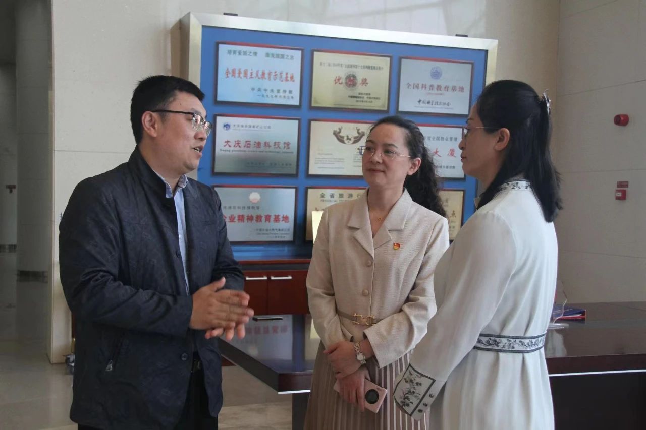 随后双方就共建内容展开交流。孙馆长表示:科技馆从共建育人基地的目标出发,适时或定期会为金沙官网开展现场教学、大学生社会实践、专题类研讨参观、思想政治教育等提供场馆文化服务。科技馆多年坚持开展“石油科普进校园”活动,可为师生进行线上、线下石油科技专题知识讲授、吸纳大学生成为科技馆志愿者,为学生提供多种形式的展馆文化服务机会和平台。康校助表示:学校会利用大庆石油科技馆展览展示资源,加强石油科技精神、大庆精神、铁人精神、科学家精神和工匠精神的现场教学,在寒暑假或大学生实习期间,共同策划组织有利于大学生社会实践的活动,同时,双方也可派送专家和大学生助力科技馆馆藏研究和互动性、体验性展览创意工作。