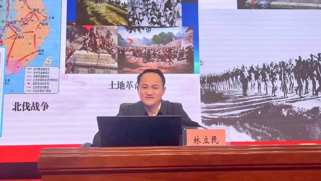 林立民书记结合“从党史中践行初心使命、强化责任担当”和“在主题教育中展现先锋带头、争做新时代合格共产党员”两个方面内容进行讲授。以“深化主题教育”为切入点,紧紧围绕“牢记初心使命”核心,通过重温党在百年奋斗历程中四个重要的历史时期,列举多位先进典型人物事迹,引导新时期党员发挥先锋模范作用,努力争做“四讲四有”合格共产党员。