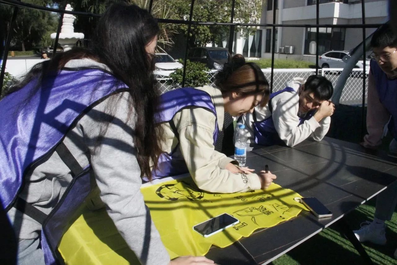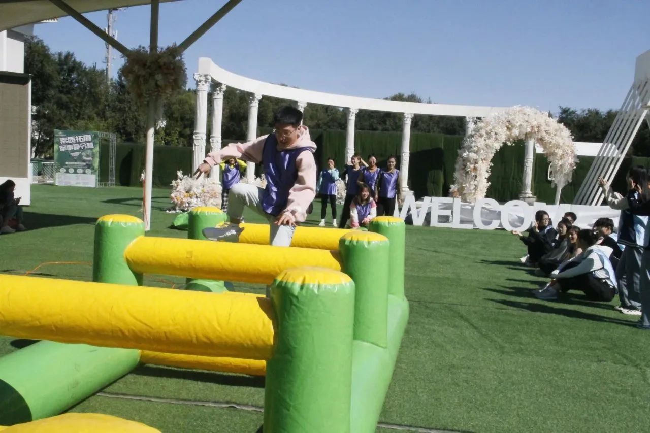 活动中,新教工积极参与,全情投入,在完成了破冰热身活动后,教师们被分为2组,在队长的带领下分别为自己的队伍设计队名、队旗,拉开了拓展训练的序幕。实践活动包含团队风采展示、毛毛虫竞赛、超级障碍、团队七巧板等多个团队拓展项目,队员们迅速进入状态,大家创新思维、有效合作,完成了各项任务。