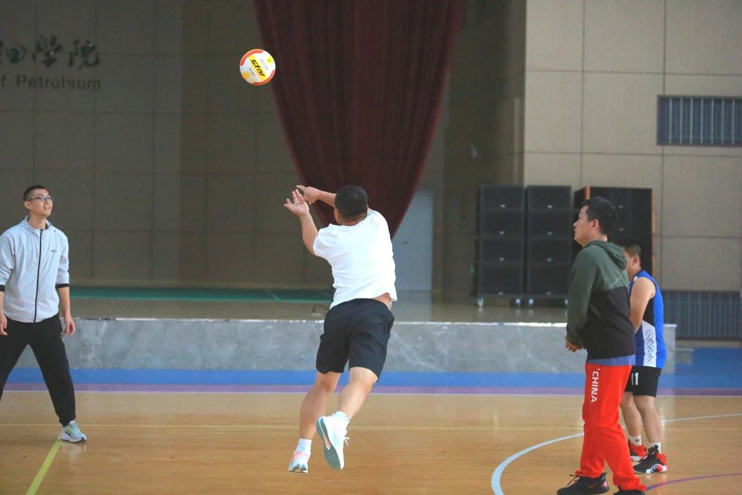 本次比赛旨在丰富金沙官网教职工的体育文化生活,增强教职工队伍的凝聚力和向心力,推动学校体育工作的持续开展。自9月18日开赛以来得到了各分工会的积极响应,本次教职工排球联赛历时10天,共有九支代表队的近百名教职工运动员进行20场比赛的激烈角逐。在冠亚军决赛现场,比赛气氛热烈,运动员们顽强拼搏、团结协作发扬了新时代中国女排精神。垫传发扣拦展现了精湛的球技和良好的精神风貌,引发现场观众阵阵掌声与欢呼。