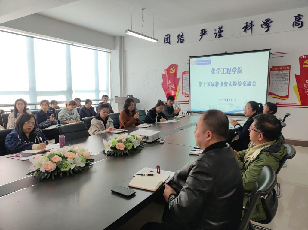 为了提高学院教师的整体教书育人水平,推广优秀教师教书育人成功经验,充分发挥优秀教师以点带面的榜样作用,使优秀教书育人经验转变为全体教师的共同财富,同时为教师搭建相互交流和学习的平台。化学工程学院于10月17日下午召开第十五届教书育人经验交流会。会议由教学副院长彭殿宝主持,院长杨昕、党总支副书记赵婧、主任教授马慧媛、史克英及全体教师参加会议。