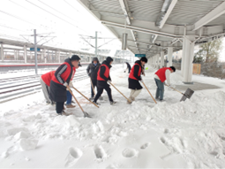 战北风,清冰雪,志愿者们不畏严寒,个个争当除雪保畅的“排头兵”。经过志愿者的团结协作,很快清扫出了“安全通道”,高标准完成本次志愿服务活动。迎雪而动战一线,志愿服务映初心,石油工程学院在学校党委的正确领导下,不断完善“党建与业务工作深度融合1+8工作模式”,充分发挥党员、团员的先锋模范作用,不忘初心,在关键时刻能够发挥好带头作用,积极参与各类志愿服务活动,在为基层解忧中亮身份、见行动、作贡献,用诚挚热情和实际行动赓续铁人精神,将铁人精神薪火相传,体现出哈油人良好的精神风貌,得到哈尔滨北站领导的一致赞誉。