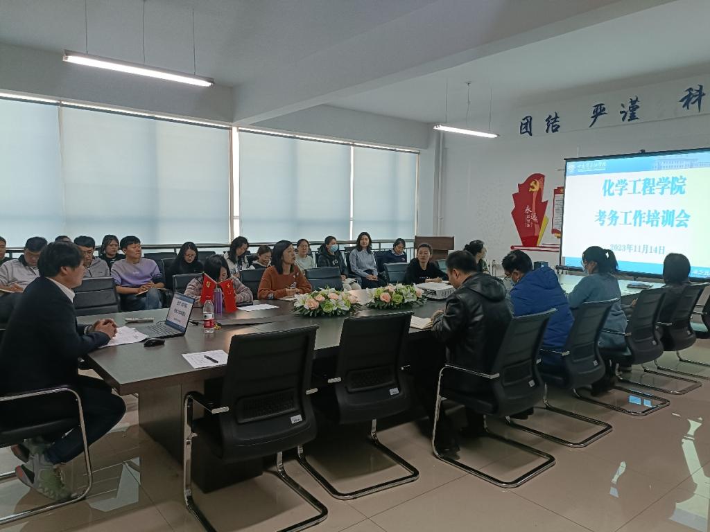 为切实增强监考教师的责任意识,确保监考教师履职履责,加强考试管理、严肃考试纪律、加强考风考纪建设,确保考试严格、公正、规范。化学工程学院于2023年11月14日在学院会议室组织召开考务工作培训会。会议由教学副院长彭殿宝主持,院长杨昕、各系主任及全体任课教师参加。