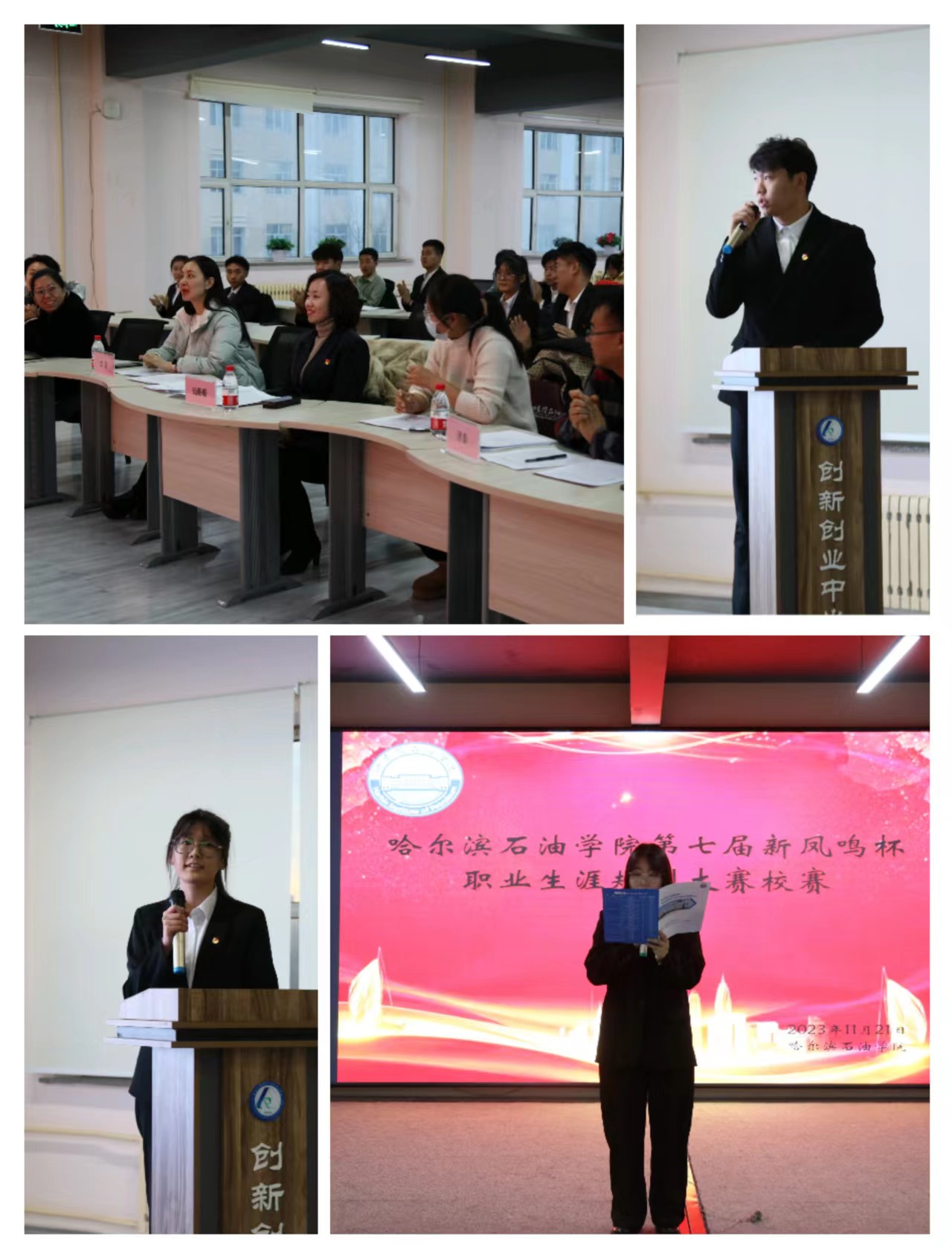 为贯彻落实《教育部关于举办首届全国大学生职业规划大赛的通知》(教学函〔2023〕1号)文件要求,进一步加强学校生涯教育和就业指导工作,促进毕业生充分就业、高质量就业,开展此次大学生职业生涯规划大赛。11月21日下午,哈尔滨石油大学开展了第七届“新凤鸣杯”大学生职业生涯规划大赛校级决赛。