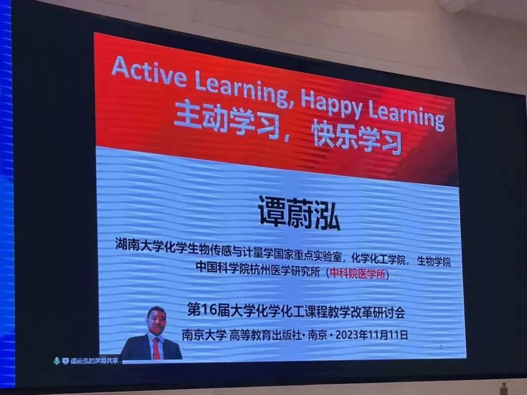 会上,湖南大学教授、中国科学院院士谭蔚泓作题为“Active learing, happy learing. 主动学习,快乐学习的报告;浙江大学教授、博士生导师、化学“101计划”指导专家彭笑刚作题为”适合本科教学的超多分子理论框架”的报告,二位专家的报告内容由浅入深,受到参会代表的热烈好评。其他代表还作了“开展系列教改研究 助推创新人才培养”、“一流课程建设思考与实践”、“智能分子工程”、“工程伦理——拔尖创新人才的关键素养”等主题报告,大会报告质量高,引领化学化工类教学科研前沿。
