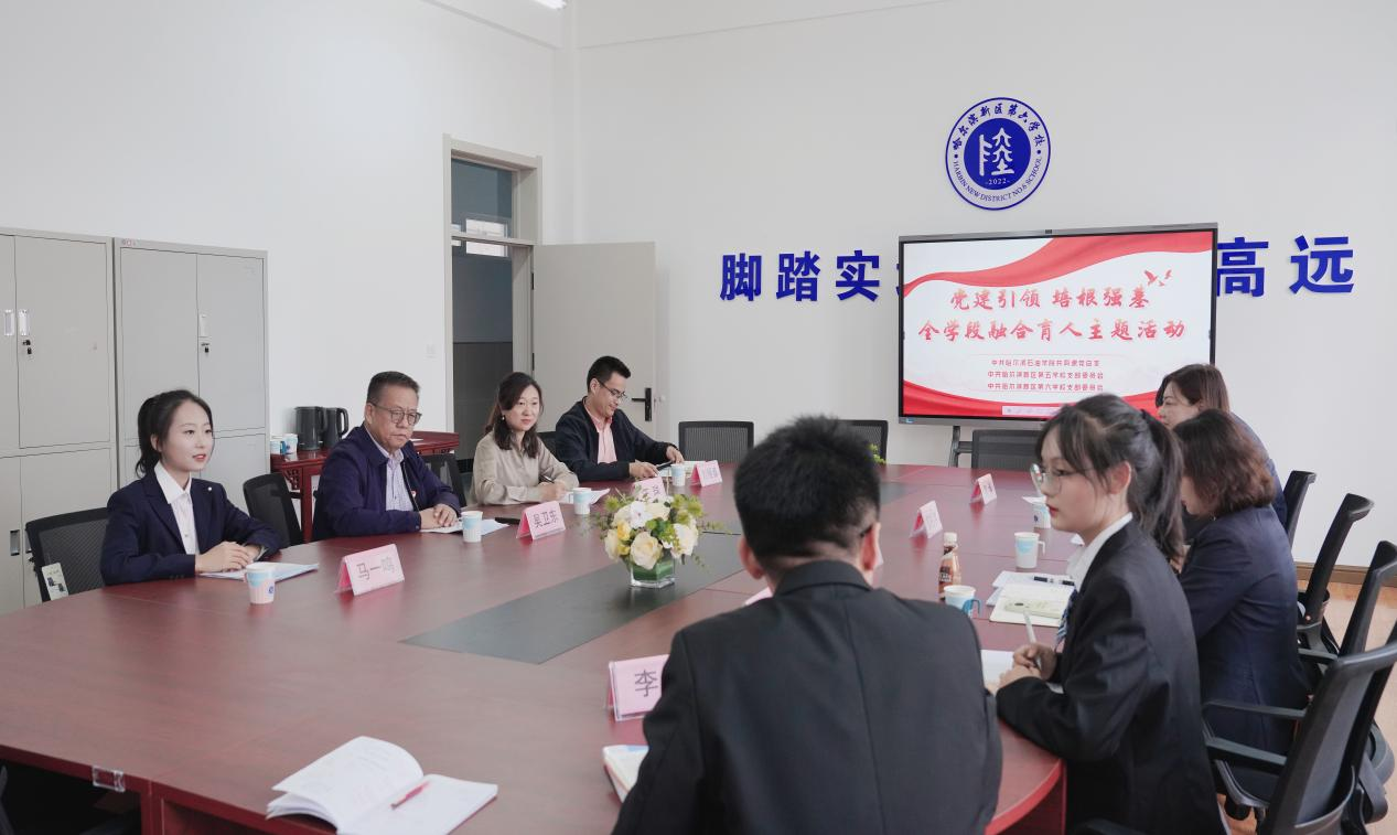 全体参会人员共同针对“大中小学思政一体化”展开了探讨。马克思主义学院副院长、党支部书记王瑞分享了以教育部“全国党建工作样板支部”创建培育为契机,从方向上用好党建引领引擎,纵向破除学段壁垒,深入推进党建工作与教育教学深度融合的案例和做法。